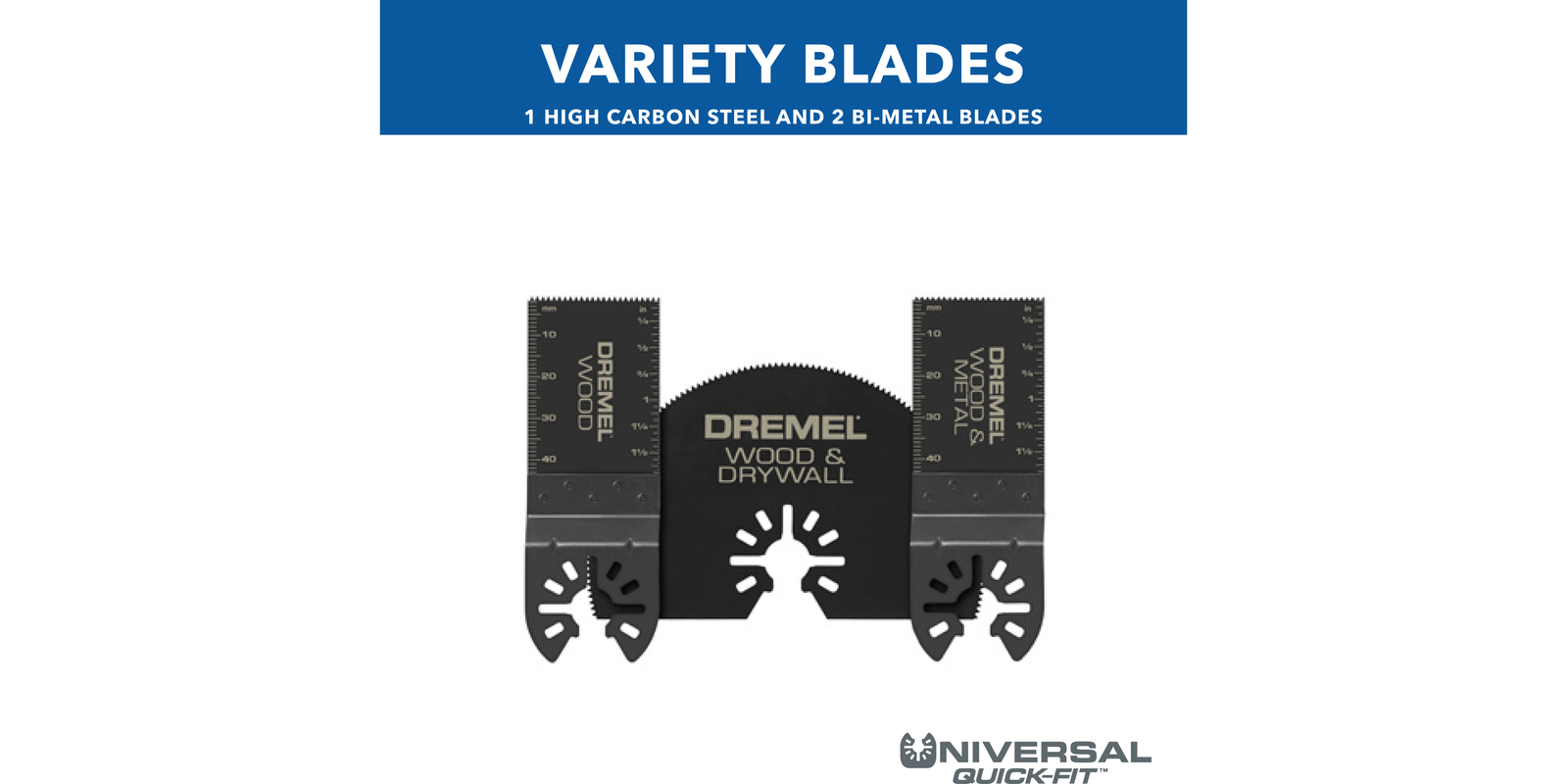 Universal Quick Fit blades are compatible with Dremel, Bosch, Makita, Milwaukee, and RockwellHigh carbon steel blade material for high performance wood cutting applications with flush cutting capabilityBi-Metal blade material for high performance metal/wood cutting applications with flush cutting capabilityHalf moon blade design ideal for cutting openings in flooring for venting or in walls for electrical boxes, as well as repairing damaged flooring and window restorationAll Multi-Max accessories are Max Performance tested for endurance in real-life applications so that you can feel confident that every Multi-Max accessory you buy will have proven value and performance